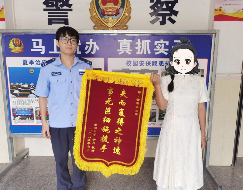 8月8日上午,劳女士送来锦旗一面感谢民辅警。“我本来以为这么小的事,你们不会太在意,没想到你们这么上心,帮我找回了电动车,也让我觉得很有安全感。”民警笑着回应:“这是我们应该做的,群众的事再小也是大事。”